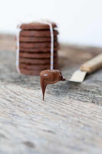 7. Once cookies are completely cooled, sandwich them together with your desired amount of Hazelnut Spread (Nutella).