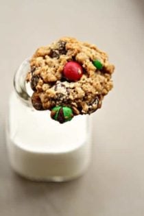 These look fantastic! Even if they are still holiday themed. I love even the name of these, Monster Cookies! I, personally, am not a fan of raisins, but as it said in your post, they are optional, which I thought was a good idea. Without the raisins it is mostly like an oatmeal chocolate chip cookie, with m&m’s, I love that particular type of cookies and you do not see them often so this is a great recipe to have in my back pocket! Definitely want to try this!