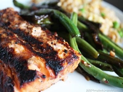 Green beansโฆyes my friends you read correctlyโฆgreen beans. I donโt think I have ever posted a side dish on my blog, but this recipe is a must post. I know these are not a sweet treat slathered in whipped cream or frosting, but they are just as goodโฆwell, in a savory way, but rest assured, they still contain sugar! I came across this amazing recipe last summer and I have made them countless times since then, but much to my dismay I lost the recipe. I knew it had originated online, but after many search attempts I came up empty-handed. On Sunday I had planned to make Firecracker Salmon and I knew these green beans would be the perfect side, so I hit up Google and once againโฆnothing. I knew the original recipe contained white vinegar; therefore, it was easy for me to weed through the other recipes. I even contacted my friend, Em to see if she still had the recipe since I had emailed it to her months back. I gave upโฆthen about two hours later the name of the blog came to me! I flipped open the laptop like a crazy person and there it was the best green recipe ever! These amazing green beans paired perfectly with the Firecracker Salmon and Fried Rice and I was one happy gal. Ohโฆone more thingโฆmake these green beans!