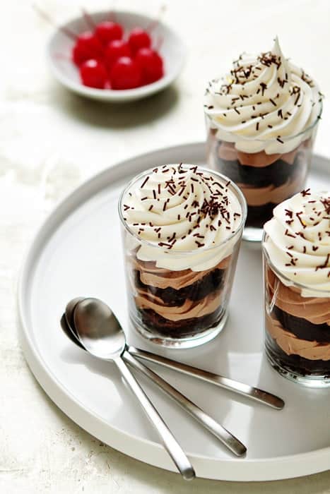 If you or your honey love brownies, nutella, and creamy whipped toppingโฆthese are pretty much your most perfect trifle ever. They come together super easy, and they keep in the fridge for a few days. They might even get better after a solid day of chilling. Not that I could wait that long for my first bite. And Iโm not expecting you to either โ just make extra!