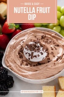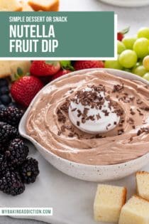 This nutella fruit dip is creamy, chocolatey, and delicious with everything from fruit to pound cake. Make it for an afternoon snack or add it to your next party menu!
