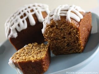 Last month, I picked up a set of four mini loaf pans from T.J. Maxx for about $3.00. I thought a delicious pumpkin bread recipe would be the perfect way to break in these pans. I used the pecans from Oh Nuts and an allrecipes recipe to create an amazing bread. This bread has a tremendous amount of reviews and really delivers in the flavor department. I made some minor adjustments to the recipe, but will also link you to the original. I loved the flavor this recipe produced, it had just the right amount of spice and pumpkin goodness. The cream cheese glaze put this bread over the top!