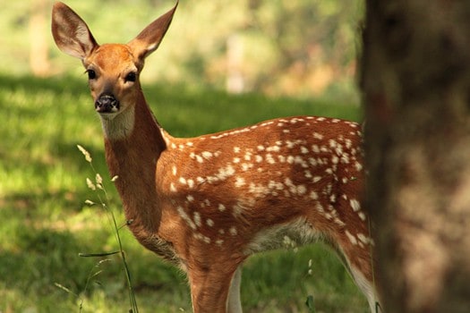 Baby deer giving us the stare down Once we were home, I immediately uploaded all of the photos onto my computer and started scrolling through them one by one. Of the hundreds of photographs that were taken throughout the week, the ones from the Oglebay Stables stood out as the most joyful moments of the trip. My next favorite photos were of the friendly deer that seemed to take over the Oglebay grounds around dusk. They were such beautiful and gentle creatures โ I thought about adding a deer to my Christmas wish list, but decided it just wasnโt practical for our condo! A girl can dream โ right?