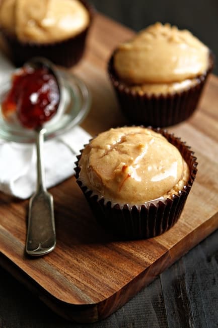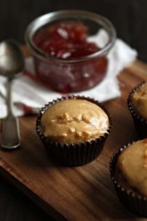 And since I do everything in excess, I topped these Peanut Butter and Jelly Muffins with a glaze. Why? Well, let’s face it – I like my muffins to be all glisteny, but it’s totally not necessary. In fact, we actually preferred the non-glazed version.