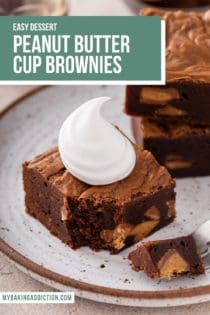 Peanut butter cup brownies are a wonderful treat for any peanut butter and chocolate lover. Gooey chocolate brownies are studded with peanut butter cup pieces for a truly indulgent treat.