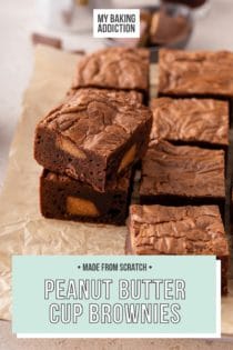 These peanut butter cup brownies are a great way to showcase those flavors, and just like my Snickers brownies, they’re a great way to use up any leftover candy as well!