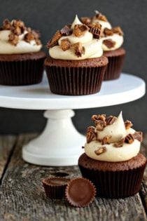 - Pipe frosting onto cooled cupcakes and finish with chopped Reeseโs Peanut Butter Cups.