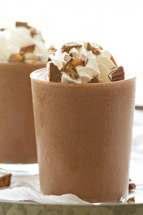 - If desired, top with whipped cream and mini Reese's Peanut Butter Cups. Serve immediately.