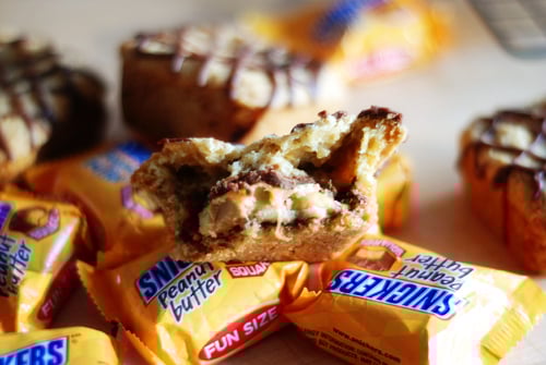 I would love to make these tonight! Too bad I dion’t have the requisite Snickers bars:). Question: do these get baked on cookie sheet or mini muffin tins? The directions say baking pans then further down says place in one of the wells of the pan. Can you clarify when you have a second?