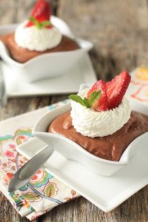 The result? This is one of the most decadent, rich desserts that I have ever made orย tasted. The coffee added a great depth of flavor and the consistency was truly lovel. More importantly, the choco-holics enjoyed every last spoonful. I served this topped with fresh whipped cream and strawberries. I hope you enjoy this recipe as much as we did!