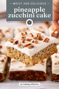 The zucchini and pineapple both add flavor and moisture to this recipe, making for a perfectly textured, delicious cake.