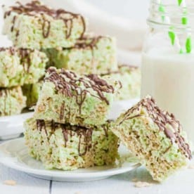 Pistachio Rice Krispie Treats with Dark Chocolate