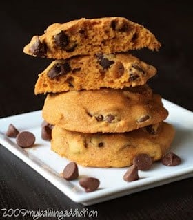 At first I was a little apprehensive of the chocolate & pumpkin flavor combo, but it turns out the chocolate chips truly compliment the pumpkin. These cookies have an awesome cake-like texture with a bit of chew. They honestly stayed soft for days in a sealed container and really maintained their freshness.
