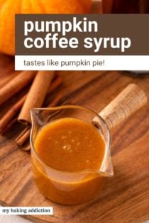 Sweet and perfectly spiced pumpkin coffee syrup is a delicious way to dress up your coffee right at home. But don’t stop there! This luscious syrup is equally amazing on pancakes and waffles, drizzled over ice cream, or as a topping for cheesecake.