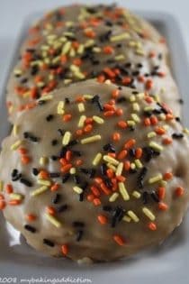 I am going to forewarn you that this recipe makes a lot of dough, but I wanted large cookies so I was okay with the massive vat of dough that made my KitchenAid struggle. This recipe makes very soft cake-like cookies and they are topped with a deliciously sweet caramel icing. These were taken to the boyfriend’s place of work where they were thoroughly enjoyed.