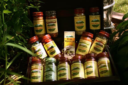 Spices included will vary slightly from what is depicted in the photo. See below for a listing of what is included in the Holiday Recipe Exchange Treasure Chest of Spices.