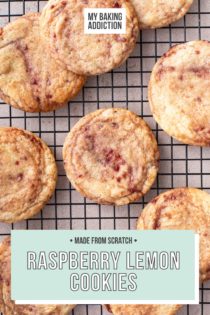 Bake the raspberry lemon cookies for 14-16 minutes; they’re done when the edges are golden and the centers are puffed but still appear slightly underdone. Let the cookies cool on the baking sheet for at least 5 minutes before moving them to a wire rack to finish cooling.