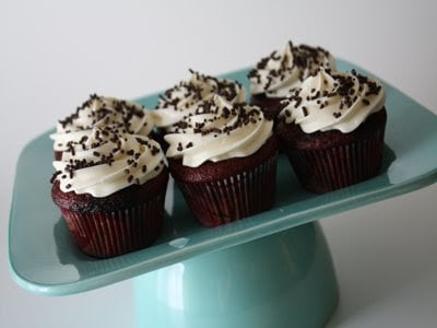 Cupcakes…you all know I have a thing for them! For some reason they are my go to baking item and they are my favorite thing to decorate! I have been trying to step outside the box and experiment with different flavors, textures, colors, etc. Although I have made this red velvet recipe once before, I never featured it on my blog, so I decided to make it again. This recipe is from the New York Times and yields 3 cake layers, so scale it down if you do not need that much batter. I actually used the recipe as stated and ended up with about 30 large cupcakes. This recipe is so easy and delicious and was introduced to me by a great gal on a food board. I paired the cupcakes with a delicious cream cheese frosting from my good friend, Em, The Repressed Pastry Chef. If you love Red Velvet Cake and have never tried this recipe, do it….I promise you will not be dissappointed! For the Red Velvet Cake Recipe, click here. For the Cream Cheese Frosting Recipe, click here. Oh, and if ya love that cake stand in the first pic, click here. Enjoy!