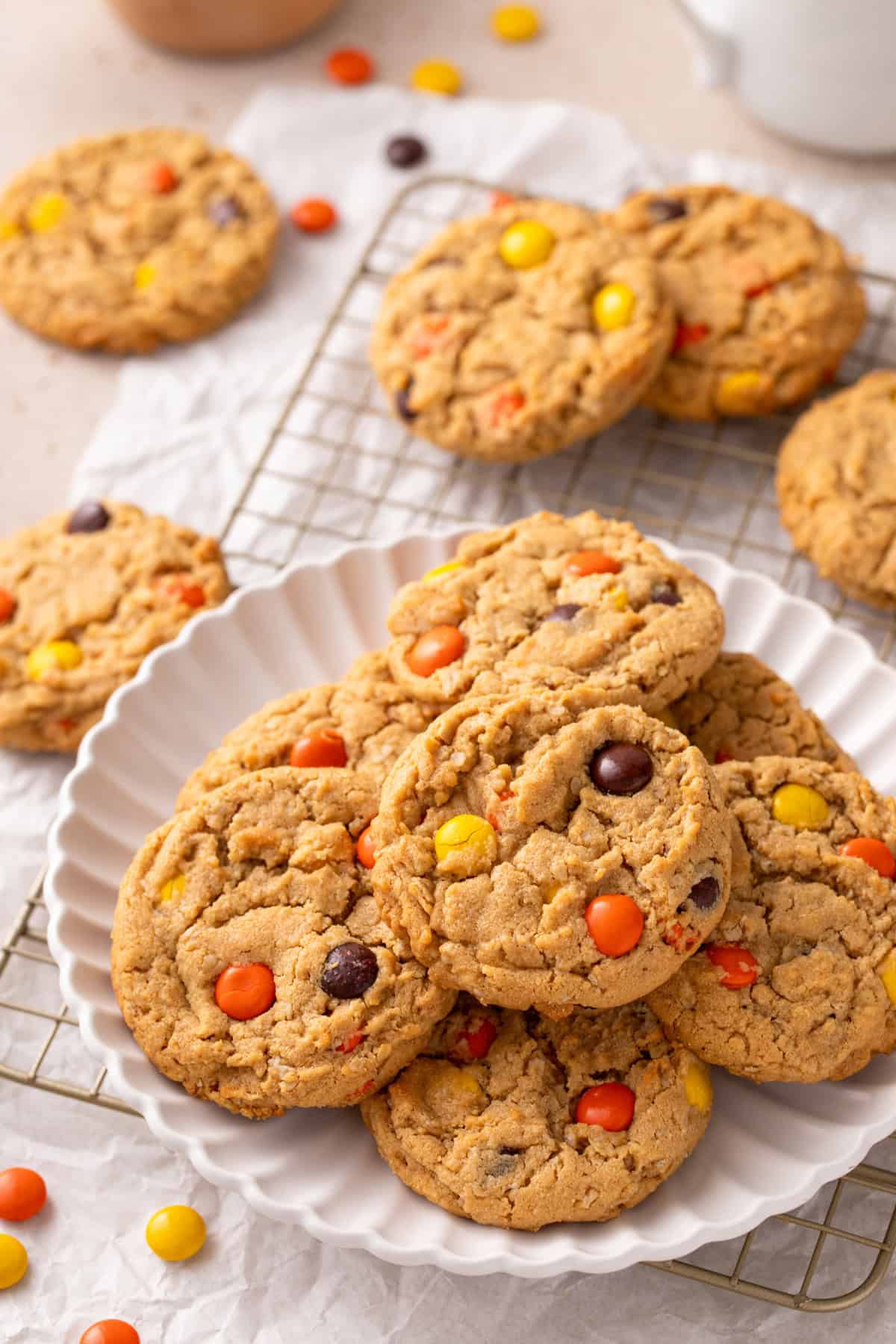 These Reese’s Pieces cookies are one of the best examples of that combination.