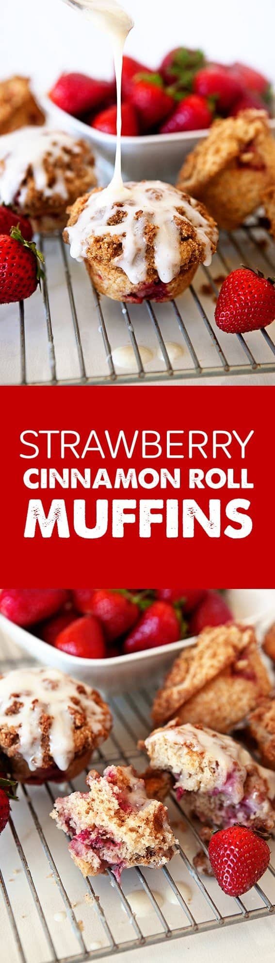 Strawberry Cinnamon Roll Muffins are everything you love about a fruity, sweet cinnamon roll, but in a fraction of the time.