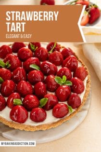If you can only find larger strawberries, feel free to cut them in half or even in quarters or slices to decorate the top of the tart.