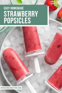 Give these strawberry popsicles a try for your next swim party, summer movie night, or simply for the perfect treat on a hot day. The whole family will love them!