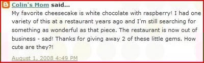 Congrats, Colin’s Mom! Contact me at mybakingaddiction /at/ gmail dot com to claim your prize!