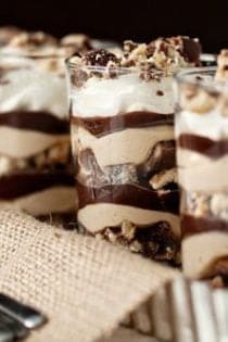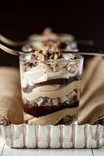 Peanut Butter Parfaits made with Girl Scout Cookies? Yes, you read that correctly and yes, they are as rich and decadent as they sound. If you read My Baking Addiction on a regular basis, you may have caught on to the fact that I am certainly no girl scout. Well, unless you count that one brief moment that I was a Brownie back in second grade. Realizing very quickly that it was not my cup of tea, I made a fairly quick exit. However, Iโm pretty certain my overly sentimental mother may still have my sash complete with a few patches.
