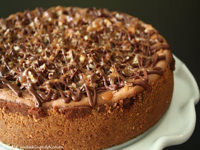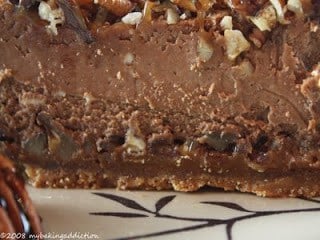 Rarely do I feel impressed with myself, but I was super proud of this cheesecake. I made this for Thanksgiving because my little bro, Jared, does not dig anything pumpkin or pecan, but he loves some cheesecake. This recipe was a first for me, but the thought of a turtle cheesecake sounded delicious to me. I turned to the Internet to find a recipe and settled on one from recipezaar. My favorite part of this cheesecake was the vanilla wafer crust and the layer of caramel and pecans that was poured onto the crust. This cheesecake was amazing…but next time I make it, I think I will leave the chocolate out of the cheesecake batter because I prefer plain cheesecake to the chocolate variety. I drizzled some caramel and melted chocolate on top and threw on some chopped pecans. If you love cheesecake, make this one…it will make your holiday season a little more delicious!