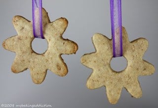 oh what a strange excuse your bf has. walnuts make the tongue hurt. *ouch*. lovely work on the cookies! especially the hanging ones! gorgeous!