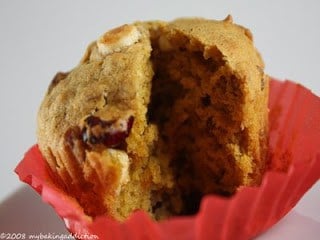 White chocolate chips and craisins! Yummy! Those look moist and delicious.