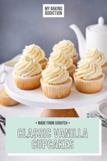 These classic vanilla cupcakes make a great base for adding all of your favorite fillings and frostings. These cupcakes bake up just the perfect height for topping with a beautiful swirl of frosting.